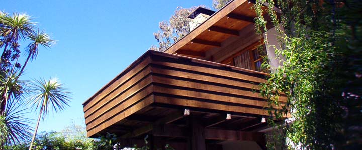 Front balcony made of Incience timber, mid-day in Spring. Copyright © 1992 PPPouchulu.