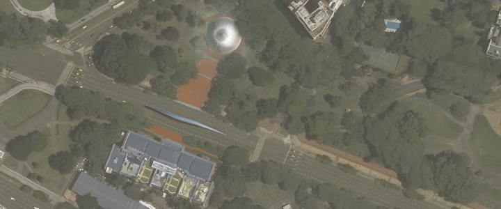 Photomontage on aerial photo. Crystal Dome access and the existing MNBA. Copyright © 2015 PPPouchulu