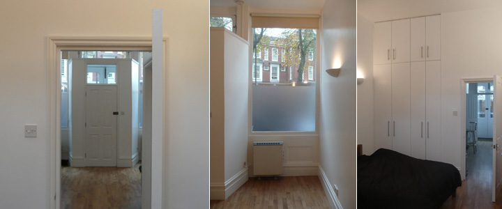After meeting Camden Council planners (the building is surrounded by a Conservation Area) the client was granted planning permission for building three new flats, completed in 2008. The top floor will be made of a pre-made steel structure wrapped with wood with a long mirrored window, placed on top with a crane without demolishing the existing Mansard.